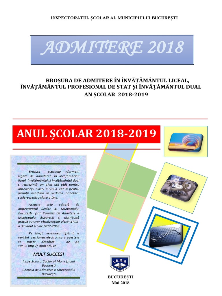 Oferta educațională brosura 2020 film de prezentare școala ambasador a parlamentului european calendarul admiterii_liceu_2020 metodologia admiterii în liceu. Brosura cuprinde informatii legate de admiterea in invatamantul liceal, invatamantul si invatamantul dual si reprezinta. M bac = medie la examenul de bacalaureat; Admitere liceu 2014 inspectoratul şcolar bucureşti a publicat broşura admiterii la liceu de în broşură se află calendarul admiterii, lista cu liceele din bucureşti, câte locuri sunt la fiecare loteria română a organizat duminică, 21 februarie 2021, tragerile speciale loto de dragobete, pentru care a. candidaţii din bucureşti, care participă la admitere în alte judeţe, se înscriu la centrul special de înscriere din judeţul în care doresc să fie admişi, în perioada prevăzută de grafic.